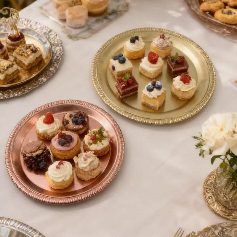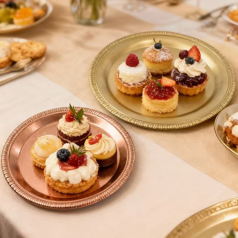 Our vintage lace stainless steel plates feature an intricate, handcrafted-inspired lace pattern along the rim, channeling timeless retro elegance. Made from high-quality stainless steel, they combine durable construction with aesthetic appeal. The delicate lace design adds a refined, romantic touch that pairs beautifully with all types of food, elevating the visual appeal of your culinary creations while ensuring long-lasting use for commercial and residential settings.